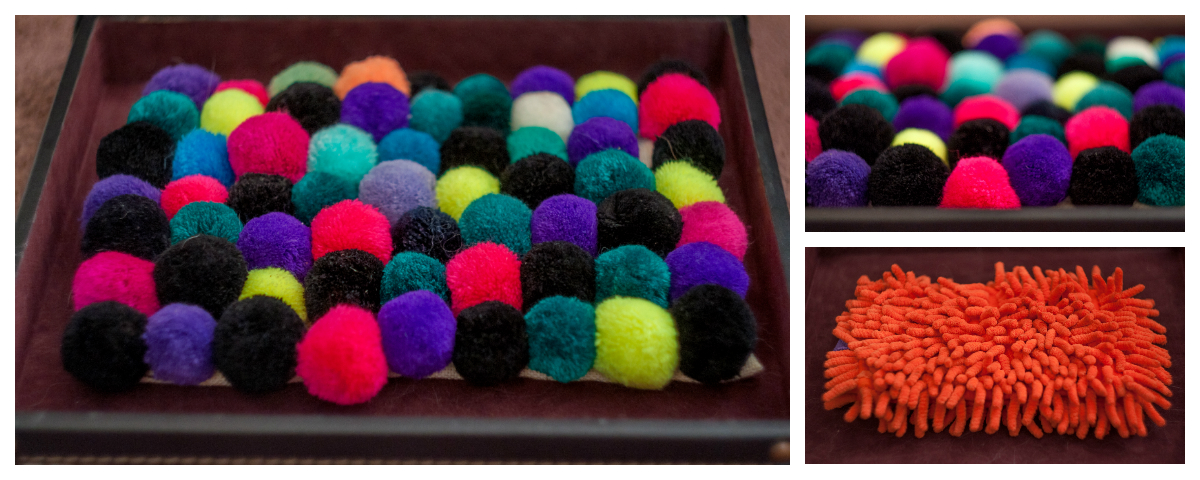 Na tento hlavolam můžete využít jakýkoli druh koberce či koberečku s vyššími vlákny, často se používají žinylkové koberečky do koupelen, žinylkové násady na mop apod. Vyrobit si ho můžete i sami doma z odřezků různých látek apod. Já mám vyrobený malý kobereček z bambulí napletených na kanavě.Použití tohoto hlavolamu je snadné - jednoduše rozprostřete pamlsky a nechte hafušu, ať si je najde.